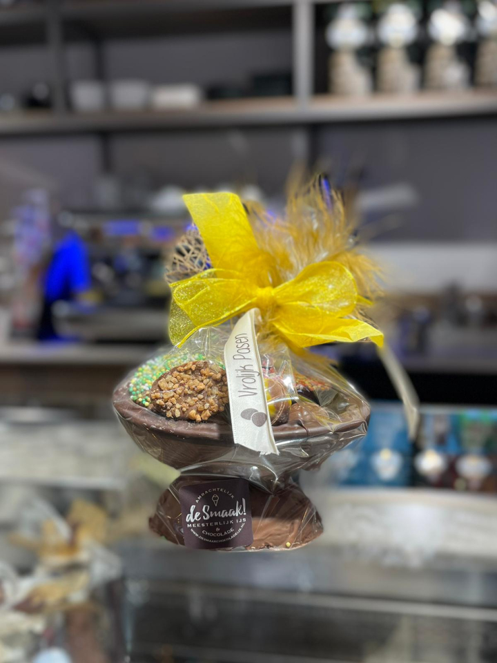 Ei op voet (groot). Ei gevuld met bonbons en chocolade!